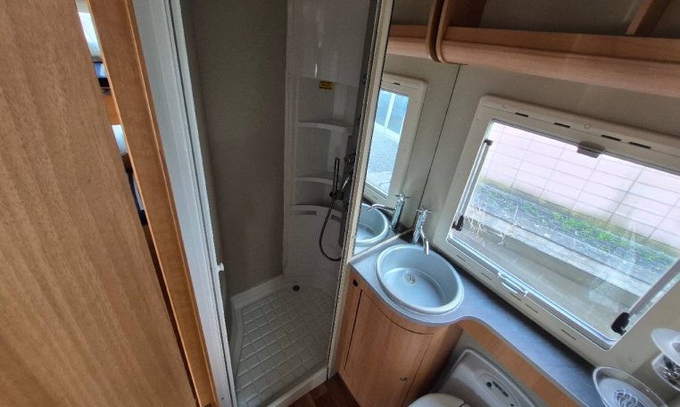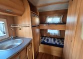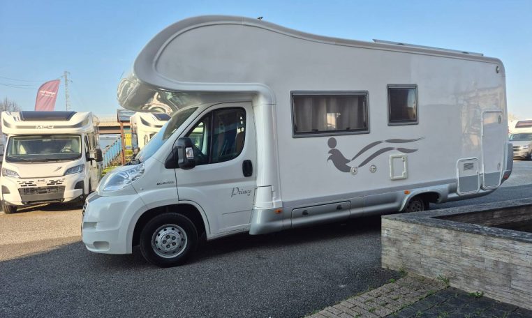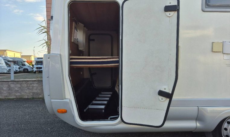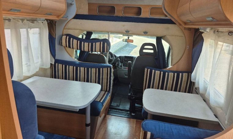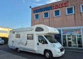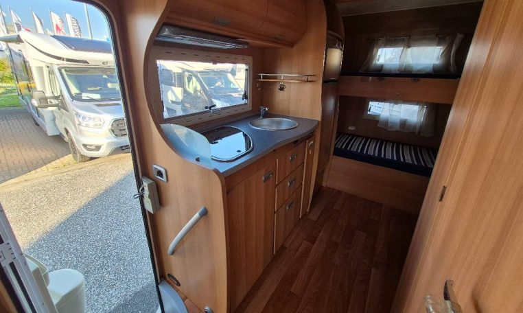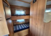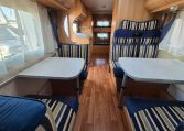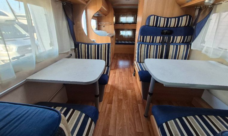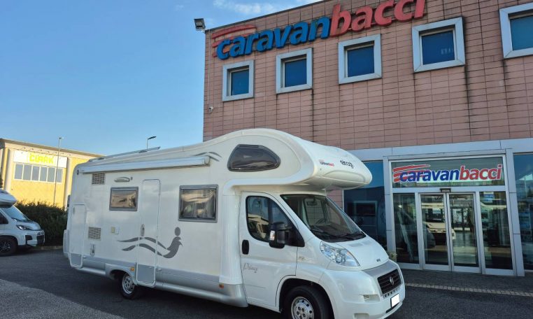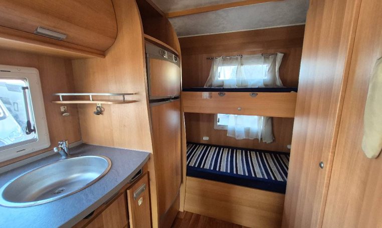 Mansardato con letti singoli a castello trasversali, bagno con cabina doccia e cucina con frigo 140l nella zona centrale, dinette classica e dinette singola trasformabili in letto, letto matrimoniale in mansarda.